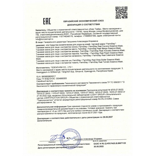 | Альтернативное название | 280327 Farmstay Тканевая маска с экстрактом манго Real Mango Essence Mask, 23 мл. |